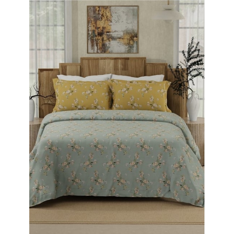 Elevate your sleep with the Gardenia Augusta 100 percent cotton 300 tc bedsheet set, a perfect blend of comfort and elegance. Made from premium combed cotton yarn, this bedsheet offers a silky-smooth texture and exceptional breathability, ensuring a cool and restful sleep. The vibrant digital prints add a stylish touch to your bedroom, while the satin-like finish provides a luxurious feel. Designed for all seasons, this set is durable, fade-resistant and easy to care for. The included king-size bedsheet and two pillow covers make it a practical and stylish choice for your bedroom.