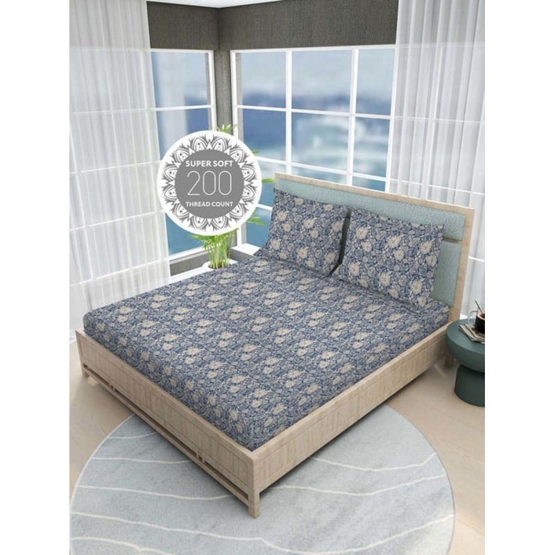 Boutique Living India Siesta Blue 100% Cotton 200 TC King Bedsheet with 2 Pillow Covers