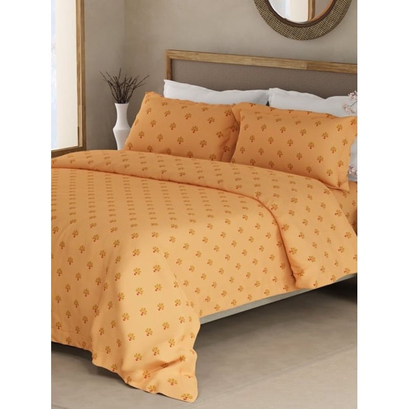 Be the first to review “Boutique Living Indo Musk Yellow Cotton Ethnic 200 TC King Flat Bedsheet with 2 Pillow Covers”
