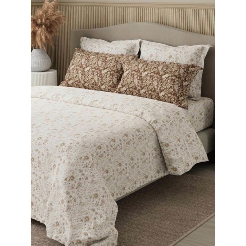 Be the first to review “Boutique Living Royal Essence White & Brown Cotton Floral 400 TC King Bedsheet with 4 Pillow Covers”