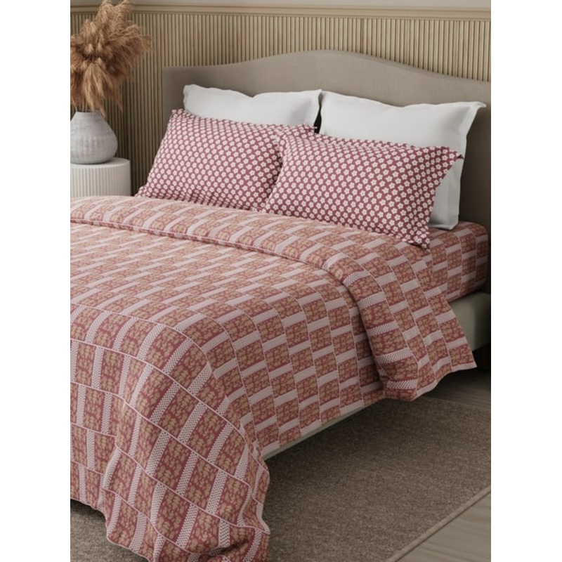 Boutique Living Valatia Karigiri Pink Cotton Ethnic 200 TC Double Flat Bedsheet with 2 Pillow Covers