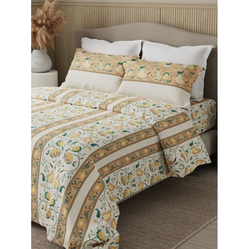 Boutique Living Valatia Karigiri Yellow & White Cotton 200 TC Double Bedsheet with 2 Pillow Covers