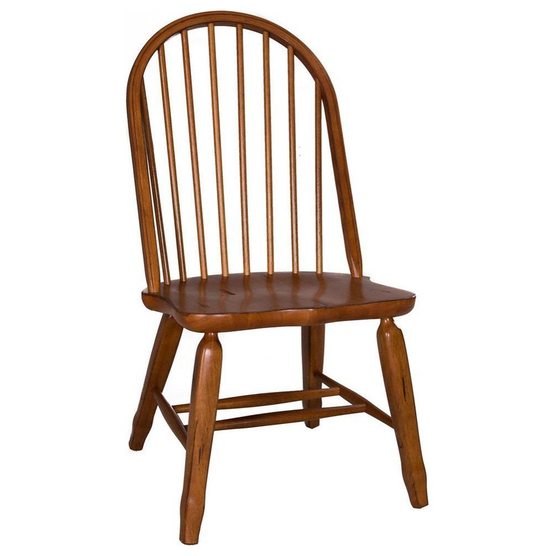 Sit in style with the Treasures bow back side chair. Crafted of rubberwood solids, this piece features a rustic oak finish, nylon chair glides to protect your flooring, and saddle shaped seating for added comfort. This chair is available in an alternative