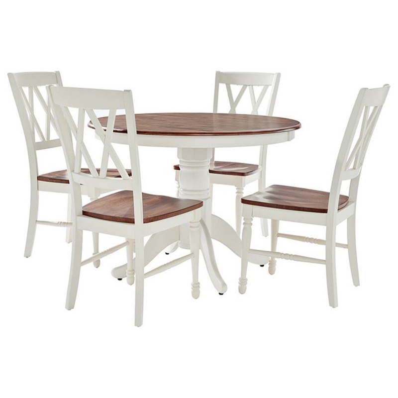 Ideal for an eat-in kitchen or dining room, the Bowery Hill 5 piece round dining set was designed with tradition in mind. Featuring sturdy wood construction with classic turned legs, the Bowery Hill dining set can pair with design aesthetics ranging from farmhouse to traditional. The open X-back chairs and pedestal base provide comfortable seating for four.