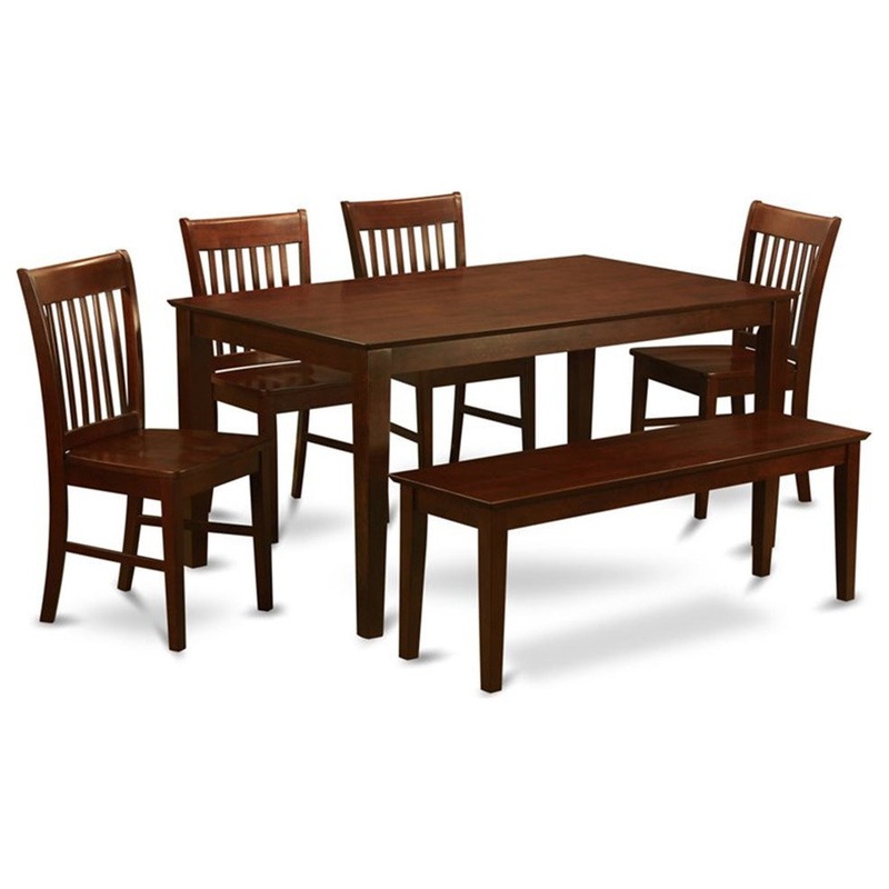-Dining set provide wooden dining chairs seat with eye-catching mahogany finish legs, mahogany finish modern dining table and hardwood 4 legs bench
