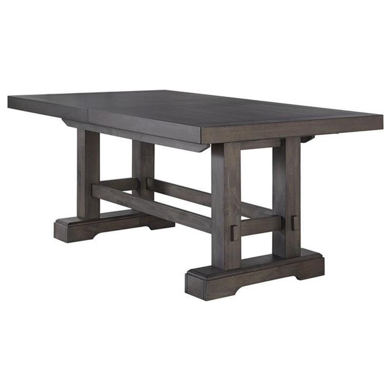 The grandly scaled Dining Table, with modern farmhouse styling, offers ample room for all of your family and guests. The plank-effect top comes with two 18-inch leaves that expand the table to a full 108 inches to seat up to 10 people. The twin pedestal ta