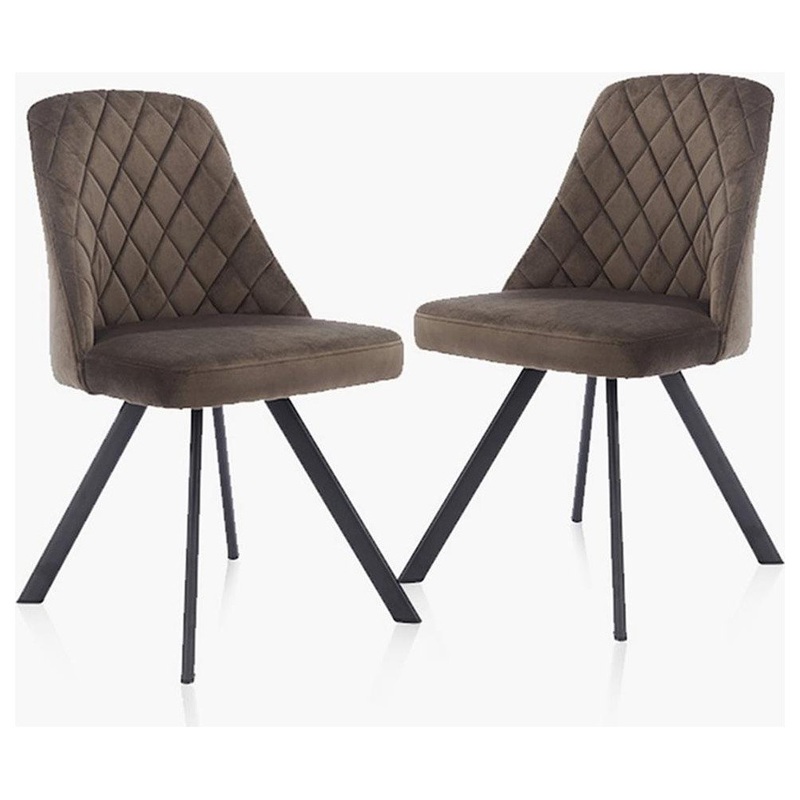 Steeped in mid-century modern charm, this set of two upholstered fabric brown side chairs delivers compelling style to your breakfast nook or dining room. Its seat and rounded back are wrapped in soft velvet-like fabric and the back adds diamond tufted for dimensionality. The seat rests atop four fin-style, splayed legs that add to its vintage appeal. Create the cozy dining space you’ve been dreaming about with this stylish side chair pair.