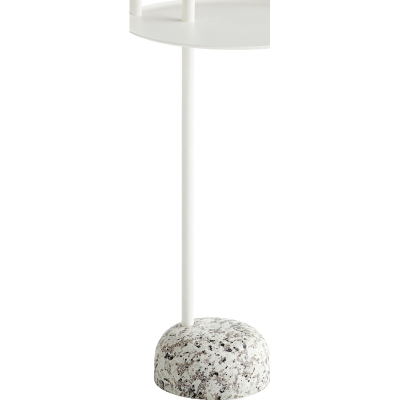Bowler is a compact side table designed for small spaces. Its single tube support extends upwards from its solid granite base to create a defined profile and a clever, functional semicircular handle. The stem, handle, and tray are made from powder coated steel, making it lightweight enough to move wherever you see fit.