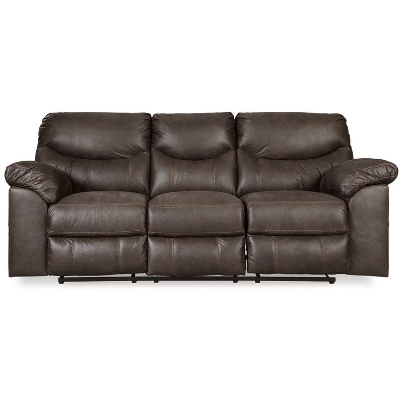 Rock the cool look of leather minus the hefty price tag with this reclining sofa. Rich with tonal variation, the indulgently soft upholstery sure looks like the real thing. And talk about indulgent comfort. Double stuffed armrests and sumptuous cushions cr