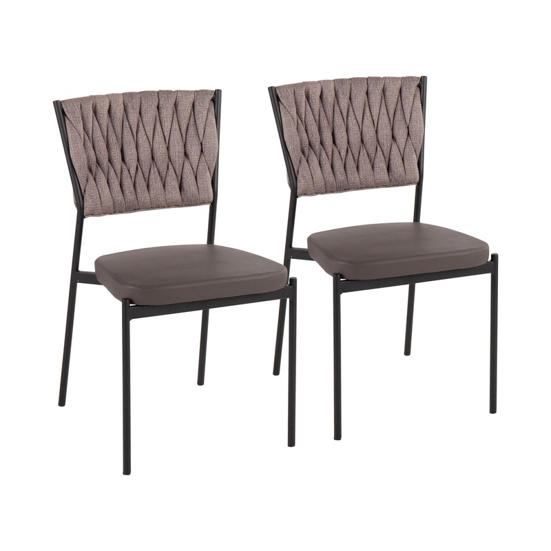 Perfect for your dining area, the contemporary design of the Braided Tania Chair by LumiSource features unique "braided" fabric and faux leather upholstery. With a comfortable padded seat and backrest, the Braided Tania has stylish black metal legs. Availa