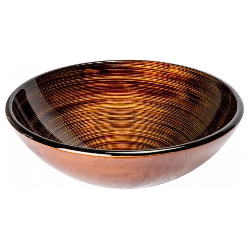 The Eden Bath Brown and Gold Rings Glass Vessel Sink features a mesmerizing pattern of brown and gold lines decorating the inside bowl and a shiny brown painted exterior. This unique sink is made of high quality tempered glass. We recommend that you also purchase a mounting ring and drain with your glass bathroom sink bowl in the same finish of your faucet.