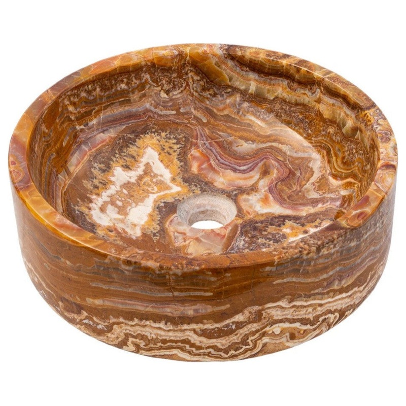 The gorgeous color polished interior and exterior stone sink ensure will be the focal point of your bathroom decor. The breathtaking brown onyx from Turkey will blend into any setting. These round bowl sinks for bathrooms are not only convenient for everyday use but also an ornament for your living space. The artisanal construction ensures that no two sinks will be exactly identical.