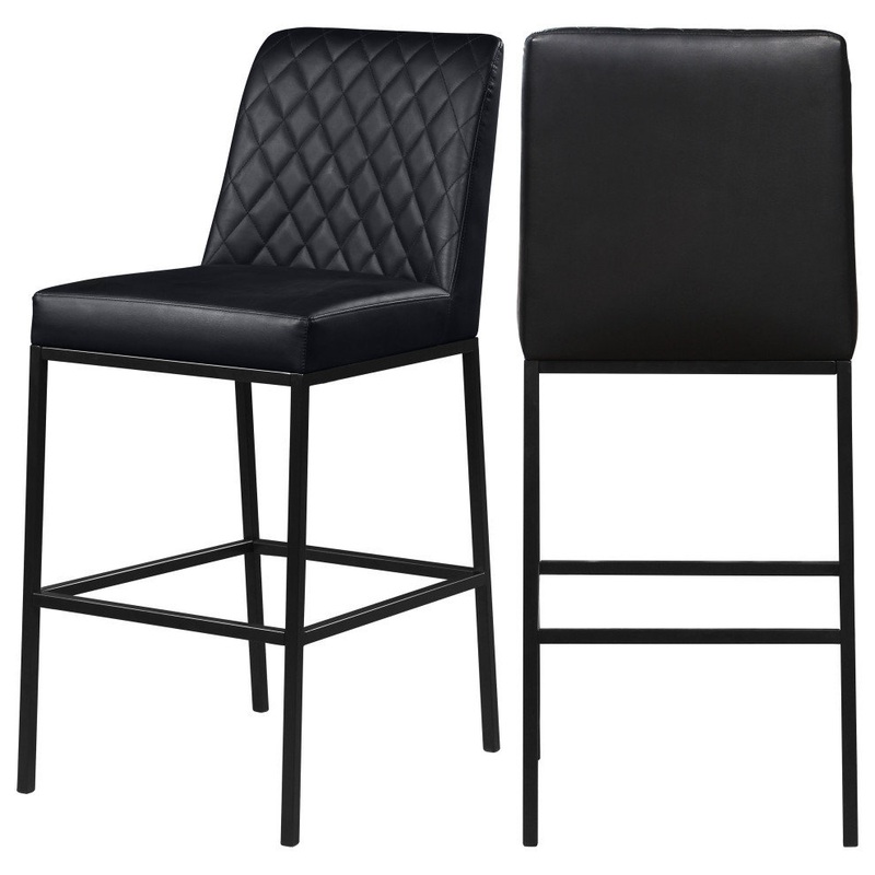 -Quilted Black Vegan Leather Bar Stool
