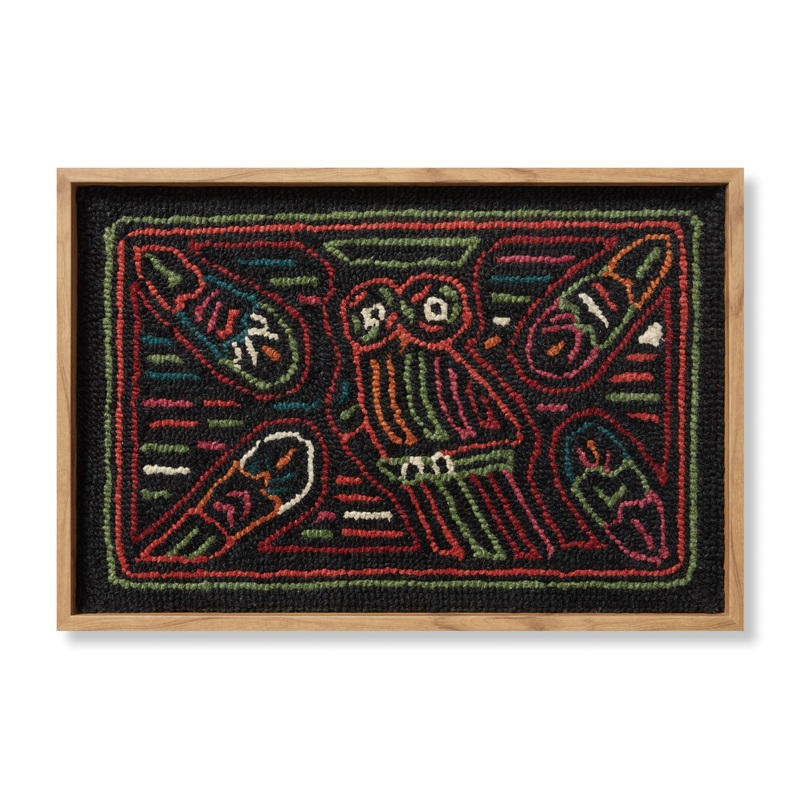 Inspired by the vibrant, stitched textiles known as Molas, this hooked wool framed wall art is the perfect mix of artisanship and modern day design. Add to an eclectic gallery wall or feature this folklore design alone as a central piece in any space.