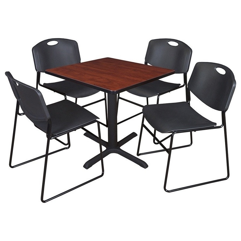 -Versatile table & chair set includes one 30-inch square Cain table and 4 Black Zeng Stack Chairs