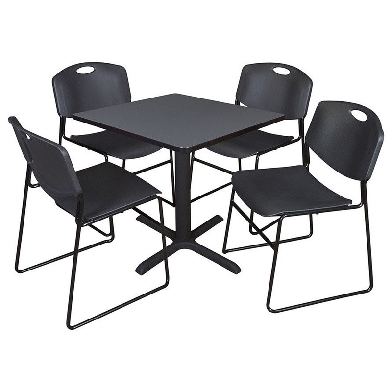 -Versatile table & chair set includes one 30-inch square Cain table and 4 Black Zeng Stack Chairs