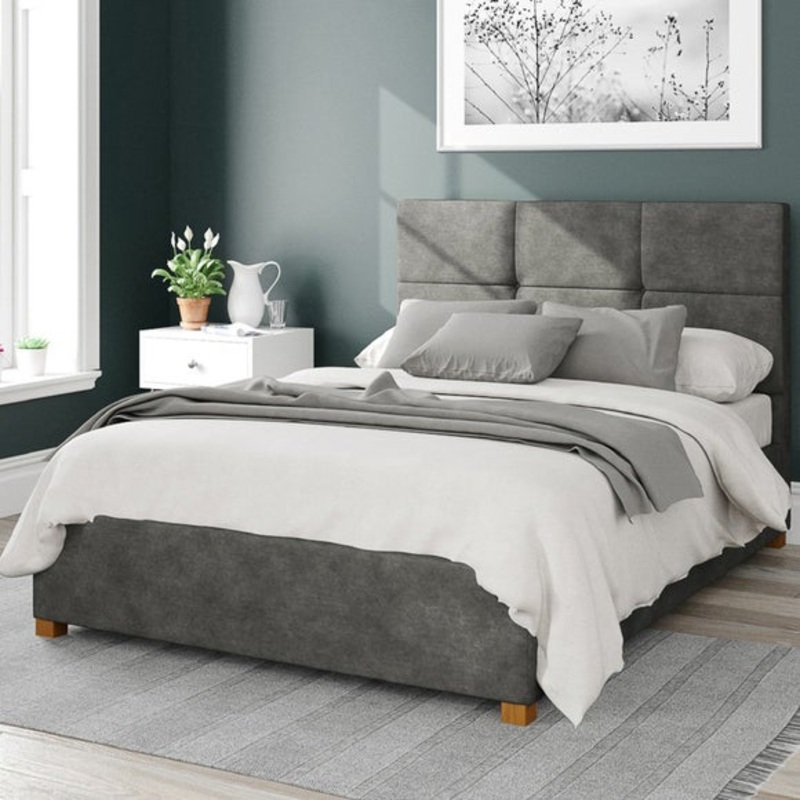 Large storage area with fabric dust protection sheetHands free access to storage (mattresses up to 60kg)Contemporary geometric headboard designKimyo linen fabricHand upholstered with deep paddingSolid hardwood feetManufactured in the UKDifferent colour opt