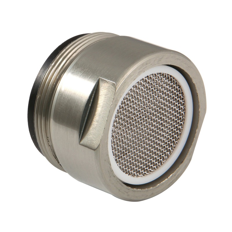 Installed at the ends of household faucets, aerators are designed with mesh screens to reduce splashing and dripping in sinks. A mixture of water and air is delivered while also helping to conserve water. This stream shaper’s thread size: US male M28 x 1.0 connection.