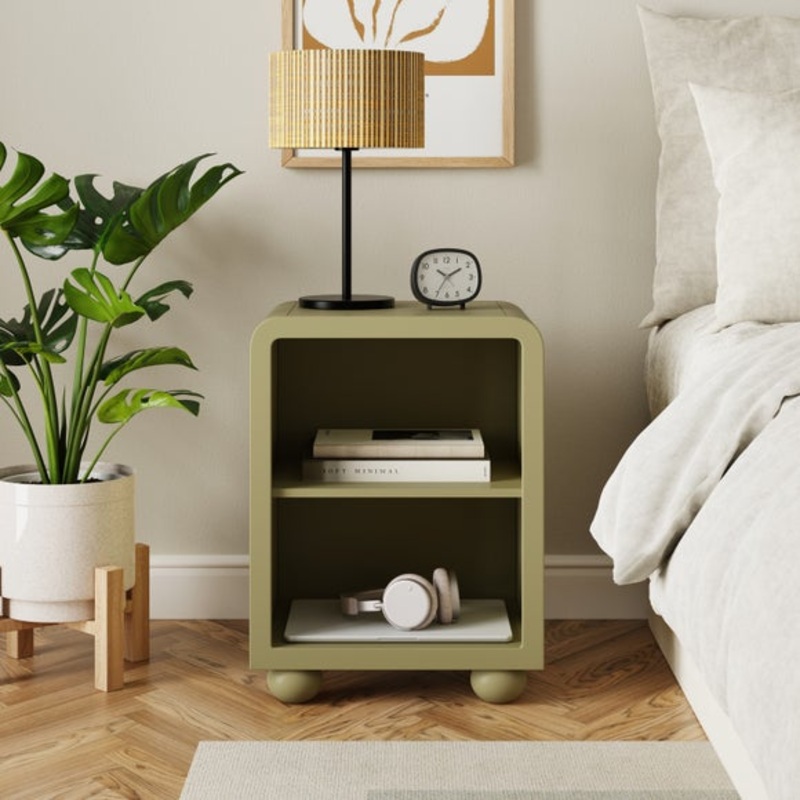 Modern bedside tableSpacious storageRounded legsThe Cami bedside table is a beautifully balanced piece that combines sleek design with everyday functionality. Its clean, minimalist silhouette is complemented by gently rounded legs, giving it a soft, contem