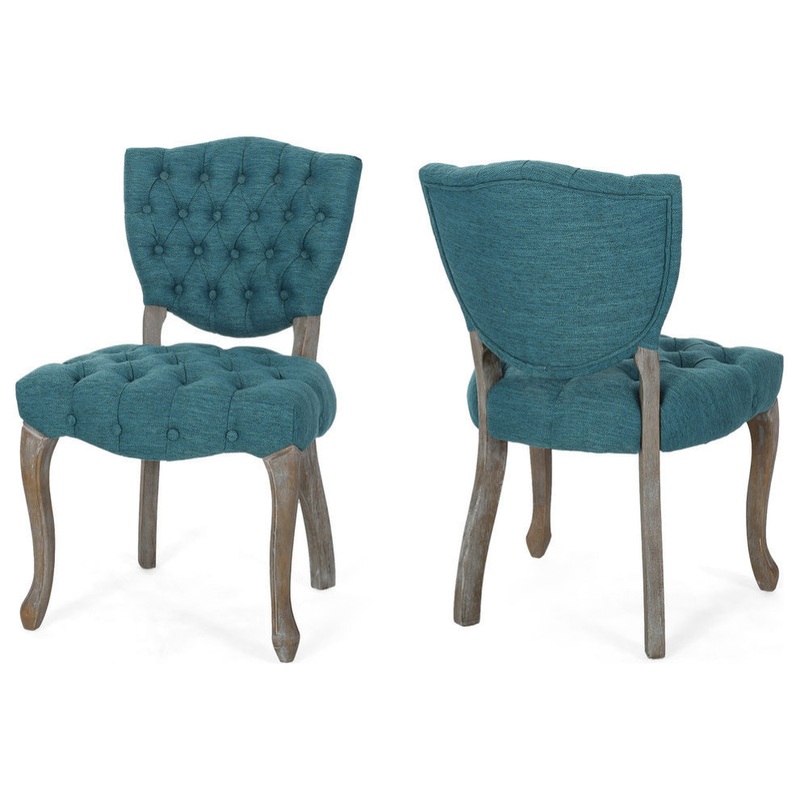 Embellish your home with an elegant and regal look that brings your interior space a traditional charm. Our chairs combine classic elements for a gorgeous design with a stunning mix of button tufting and scrolled legs. From exquisite diamond stitching to its weathered finish, our dining chair will instantly uplift the ambiance of your kitchen or dining room. Whether you are casually eating with your family or having guests over for a dinner party, our chair set furnishes your home with timeless grace.