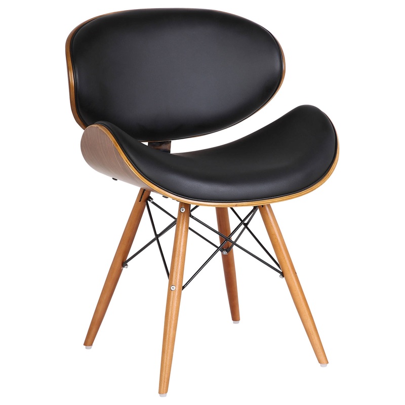 The Armen Living Cassie mid-century dining chair offers an optimal degree of comfort and style, perfect for the contemporary dining or living room. This modern dining chair features a softly curved back framed in a walnut wood finish and upholstered with plush faux leather. The leg design features metal wires which enhance the support and durability of the tapered walnut wood legs. The Cassie even comes with floor protectors to ensure stability and minimize the risk of floor scratches. The thick medium-firm density cushion seat and back will provide you with all-day comfort. The medium-high open lower back is ideal for posture alignment and an unmatched support for days on end. The foundation of the product is supported by solid walnut wood for a chic and stylish aesthetic without comprising the practicality and functionality of this item. This item is a versatile piece that can be ideal for dining, kitchen, or even home office desk chairs. This product ships in one box with an easy and quick set up. We stand by the quality, the craftsmanship, and the integrity of our product by offering a 1-year warranty for all our products. The Cassie’s upholstered seat comes in two sleek colors choices: black and gray. Product Dimensions: 21″W x 20″D x 31″H SH: 18″