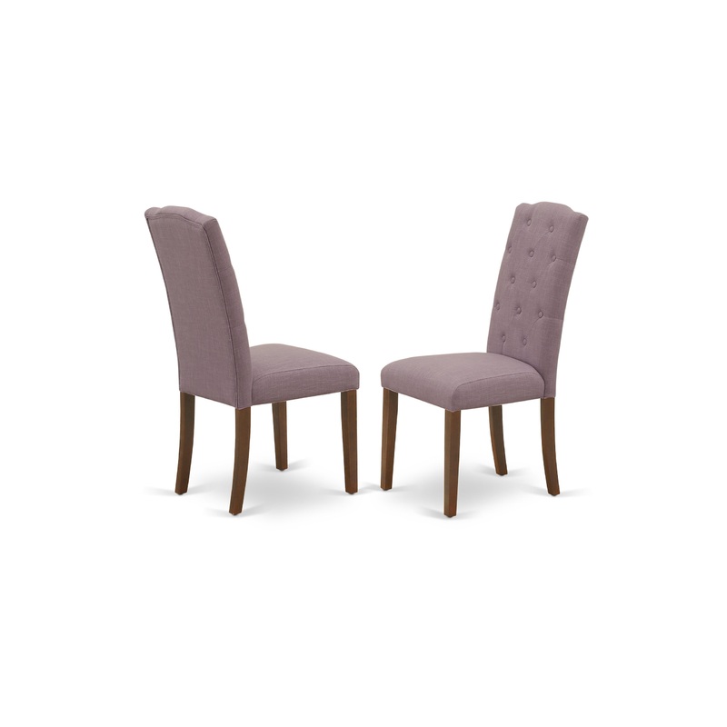 -Set of two trendy Celina upholstered parsons dining room chairs will allow you to add a feel of style into your dining area. The Button Tufting design dining side chairs will raise the sweetness of any family table.