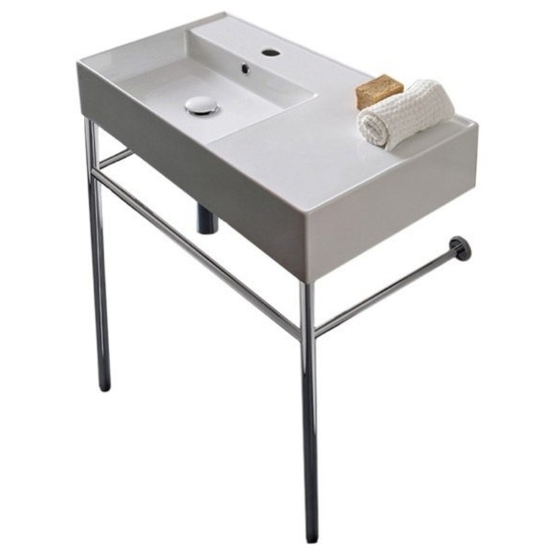Ceramic Console Sink and Polished Chrome Stand – Contemporary – Bathroom Sinks – by TheBathOutlet-Scarabeo 5115-CON-One Hole