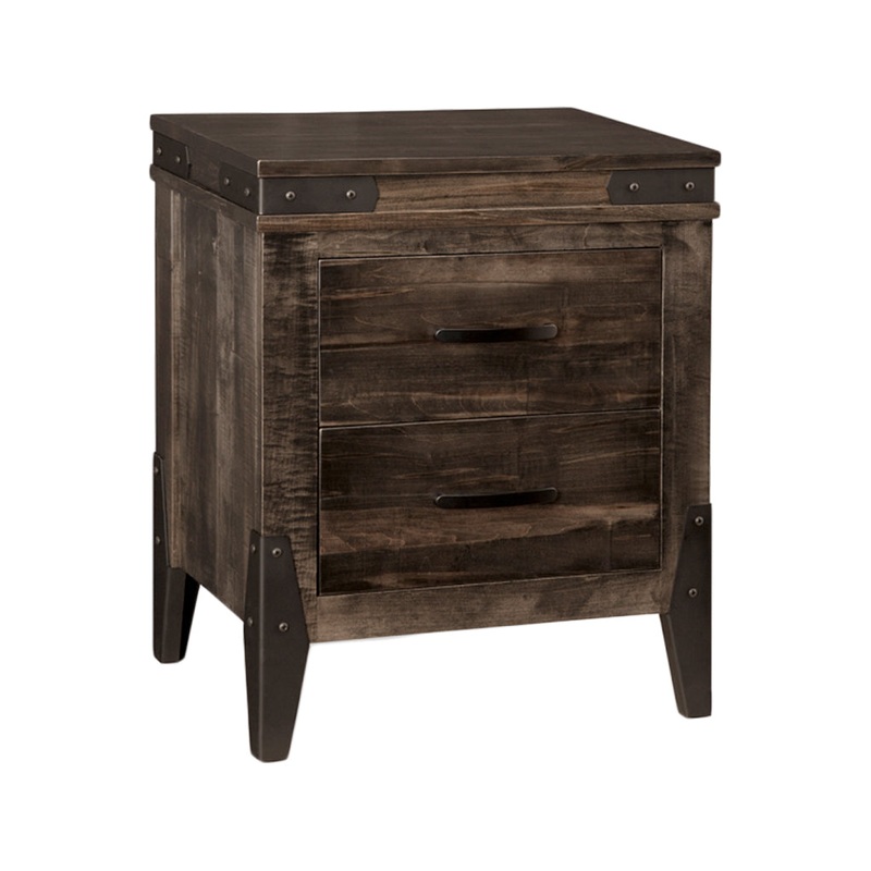 The Chattanooga Nightstand by Handstone is a solid wood, two drawer night stand that perfectly compliments and matches the rest of the Chattanooga bedroom collection. The Chattanooga Nightstand is customizable with your choice of hardware, power management