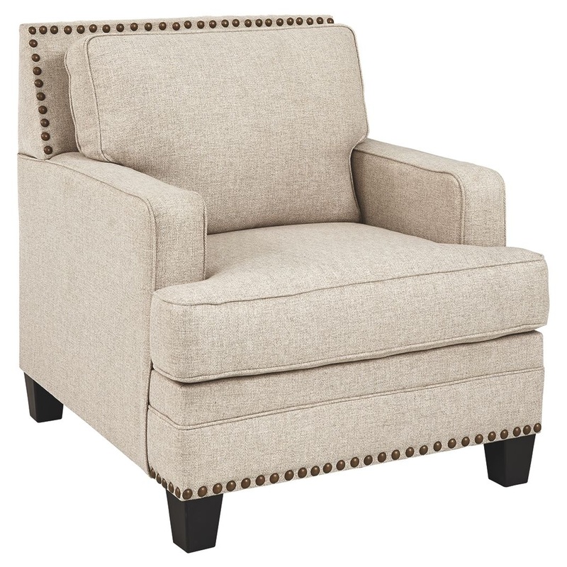 A case of contemporary and classic style influences coming together in a beautiful way, this chair in beige brings a fresh perspective to modern farmhouse living. Distinctive elements include t-cushioning that wraps around setback track arms, nailhead trim and a lovely linen-weave upholstery for an up-to-date feel.