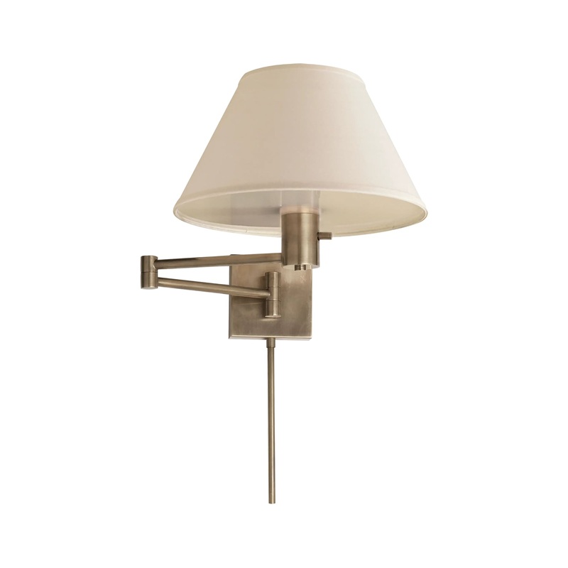 The Classic Swing Arm WallLamp provides clean, functional lighting for your living space, featuring a multi-jointed body that helps position a wide, tapered shade (with base diffuser) where it is needed most. This piece is right at home beside a bed or rea