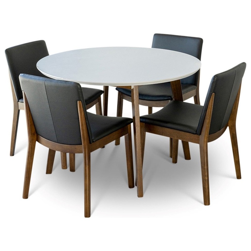 Make this timeless 5-piece Mid-Century Modern Clayton round table dining set your homes newest hub where you can set up your laptop to create an impromptu home office, or where you and your dearest enjoy a warm home-cooked meal. This dining set's high-qual