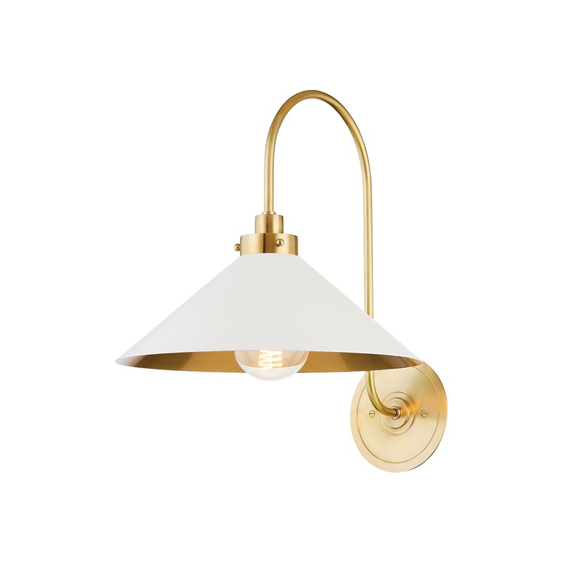 This classic metal shade design feels special with fresh finish combinations and sleek, heritage-inspired details. The contrastiing Aged Brass accents and modern gooseneck arm allow the pendants and sconce an updated, yet classic feel. The tapered shade ov