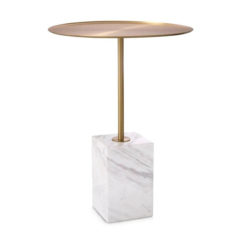 A Cole fm lerakasztal az egyszersg s termszetes vonzer jegyben kszlt. A kerek, csiszolt srgarz asztallap emelt peremmel van dsztve. Az asztallap egy tmb fehr, szrke erezettel elltott mrvny tmbn nyugszik, amely sikkes s elegns megjelenst klcsnz ennek a mese