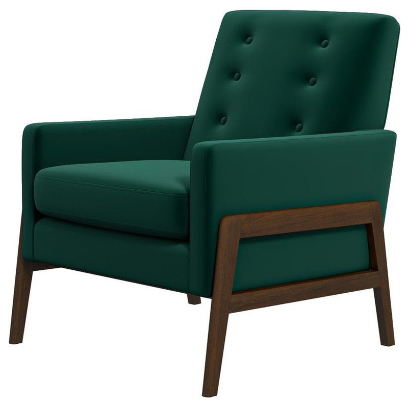 Make a statement in your living room with this mid-century-inspired Cole Mid-Century Modern velvet lounge chair in Gold. Founded atop four walnut-finished legs, this piece is crafted with a solid wood frame, and high-density foam padding which lends comfort to the seat. Upholstered in durable, high-quality velvet, this tasteful piece features elegant square arms for convenience. Can be cleaned with a non-abrasive cleaning solution followed by a quick microfiber cloth. Removable legs allow for simple delivery for tight spaces. Available in a variety of timeless colors, you’re sure to find something that matches your decor