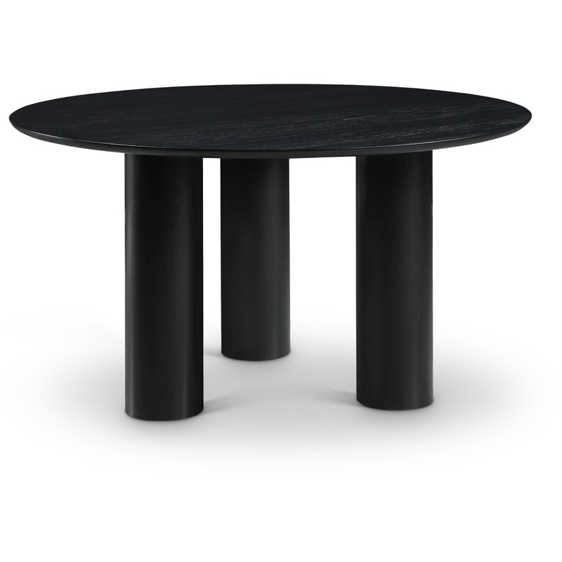 Dinner guests can’t help but be impressed when they’re seated at this Colosseum black dining table. Its rich black finish and oak veneer, crafted from a mix of solid wood and MDF, evoke mid-century modern charm. The distinctive three-column base and round top ensure ample legroom and elbow room, making it perfect for lively gatherings and intimate dinners alike. With a blend of sophistication and functionality, this table promises to be the centerpiece of memorable dining experiences in your home.