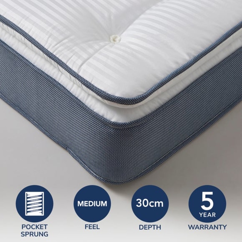 Pocket SpringMedium SupportSuitable for all SleepersTufted TopArrives FlatDesigned with your wellbeing in mind, this mattress features 1000 pocket springs expertly engineered to respond to your body's unique contours, providing tailored support and minimis