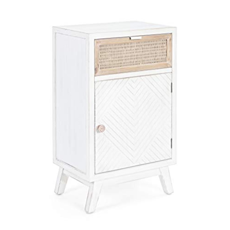 Marca: BIZZOTTOCaratteristiche: Struttura e gambe in legno di abete, schienale in mdf. cassetti in rattan naturale o mdf. maniglie in ceramica o acciaio e pomelli in legno di abete. finitura a base di nitrocellulosa.Misura:43a - 30b - 73hSTILE: RusticoEAN: