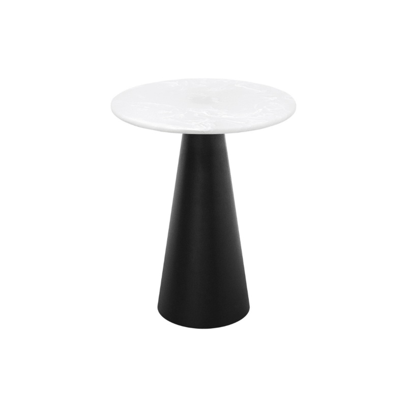 A Cone lerakasztal a modern dizjn s az elegancia tkletes tvzete. Az 50 cm tmrj fehr mrvny lap ltvnyos megjelenst klcsnz az asztalnak, amely nemcsak eszttikai rtke miatt vonzza a tekintetet, hanem tartssgval s knny tisztthatsgval is kiemelkedik. A kontraszt a fehr mrvny s a feketre festett kp alak fm lb kztt modern s stlusos megjelenst teremt, amely brmilyen nappaliban jl mutat.