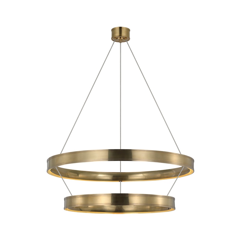 Designed by Chapman & Myers for Visual Comfort, the Connery 40″ Two-Tier Ring Chandelier introduces sculptural balance and modern refinement. With its streamlined suspension and dual concentric rings, this fixture offers geometric clarity at a slightly more compact scale. Ideal for dining rooms, entryways, and open-plan spaces, it brings elevated presence without overwhelming the room.