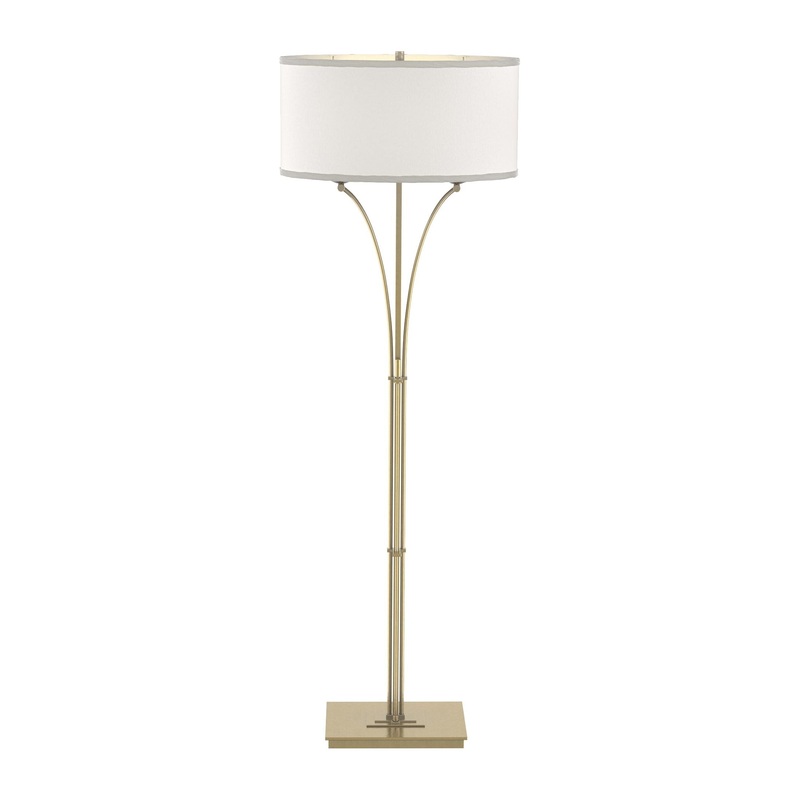 Our Contemporary Formae Floor Lamp offers a contemporary take on the traditional taper. Tubes of curved steel slowly peal from the stand running up from the base to form gentle arcs that support each bulb. Forged and formed by our artisans, each piece is u