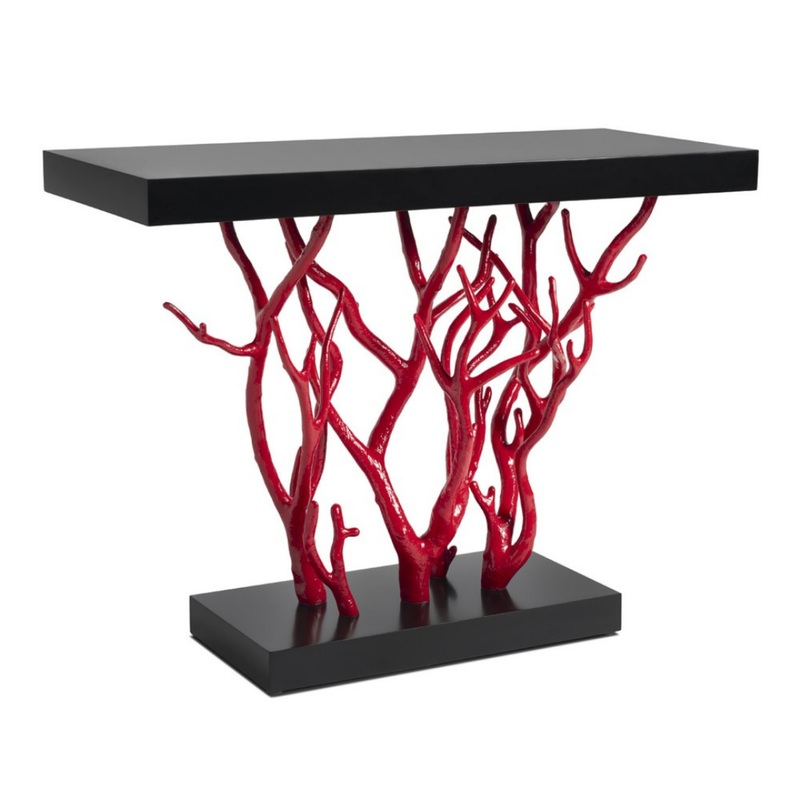 A Coralla konzolasztal egy rszletesen kidolgozott btordarab, mely a korall szer kialaktsval lenygz hangulatot kelt. Fekete fa asztallapja s talpa csodlatosan kiegszti a piros vagy fehr vzat. Mgyanta anyaga tarts, s knnyen tisztn tarthat, gy hossz lettartam