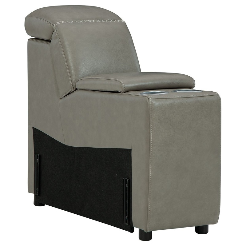 This console with storage is made with a combination of 100% top grain leather and faux leather upholstery. Pairs with other items in the series to make a sectional.Additional DimensionsArm height: 24.25"Cord length: 128"Console opening: 0"Product Features