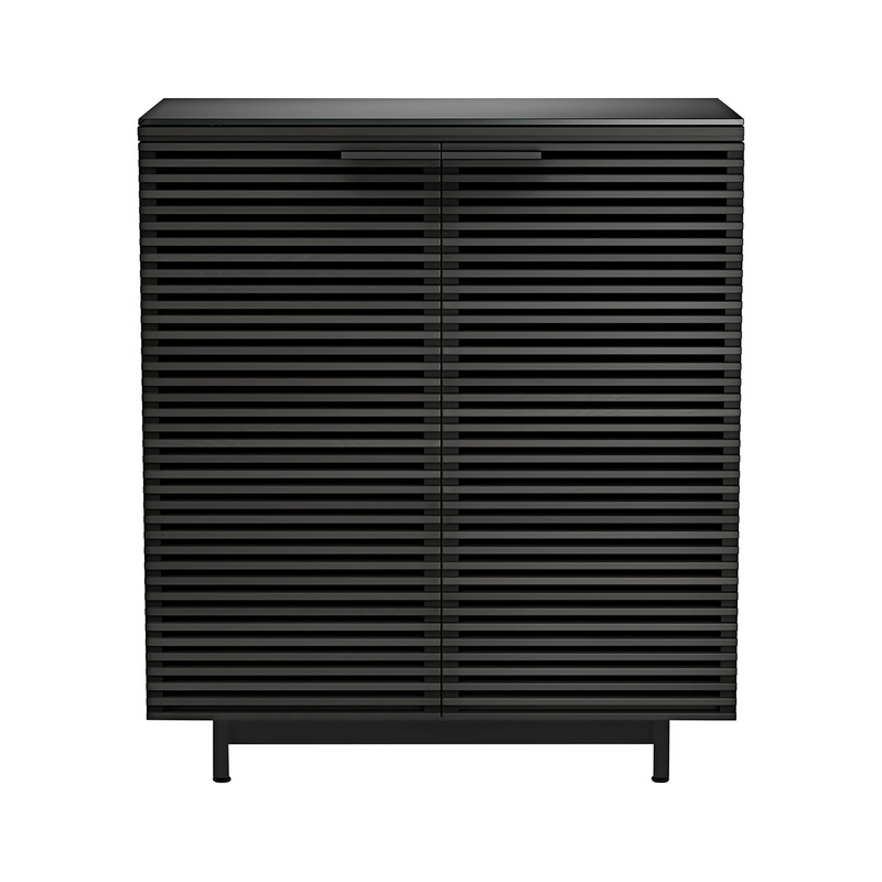The Corridor collection from BDIcuratesa beautifully practical centre of entertainment. This collection features design that easily transitions from media cabinet to all-purpose furniture,incorporatinglouvered hardwood doors that conceal a host of user-friendly features, sharply contrasted with a satin-etched glass top and black steel base. The louvered doors additionally ensurecomponents stay out-of-sight while air, sound, and media signals pass freely through. Designed with the home theatre in mind yet including beautifully crafted furniture in its own right the award-winning Corridor collection is the star of any living space.