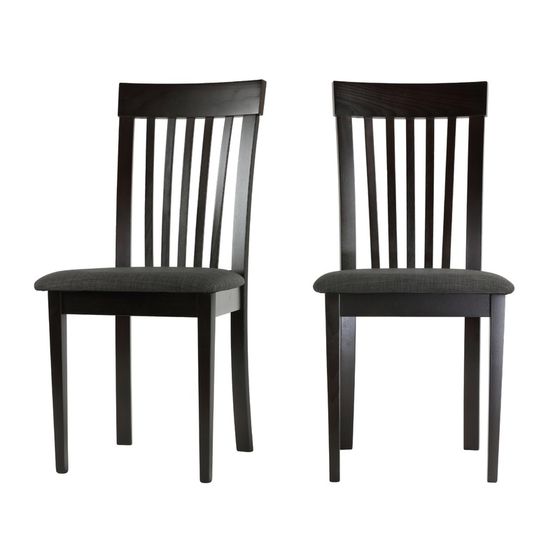 Give your dining room a makeover with these appealing Linnea dining chairs. These chairs have an upholstered seat in a dark gray fabric making them a comfortable addition to any space in your home. Made of solid wood with a cappuccino finish and features a classic slatted back. These chairs are perfect for your dining, study, or as extra seating in your home.
