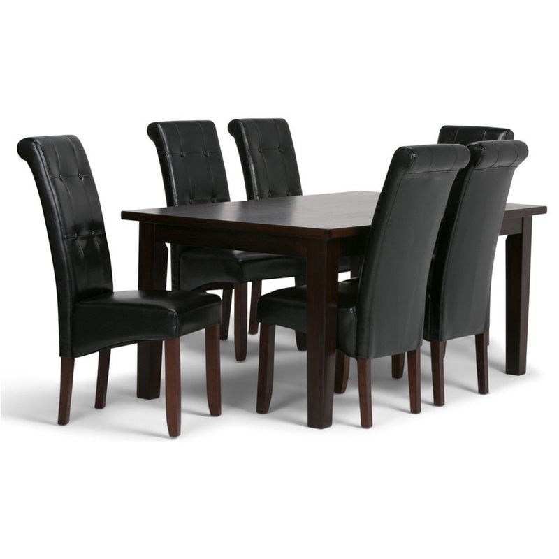 -# Contemporary dining set includes a 66-inch rectangular rubberwood table and six vegan leather chairs in Midnight Black for a stylish, modern look.