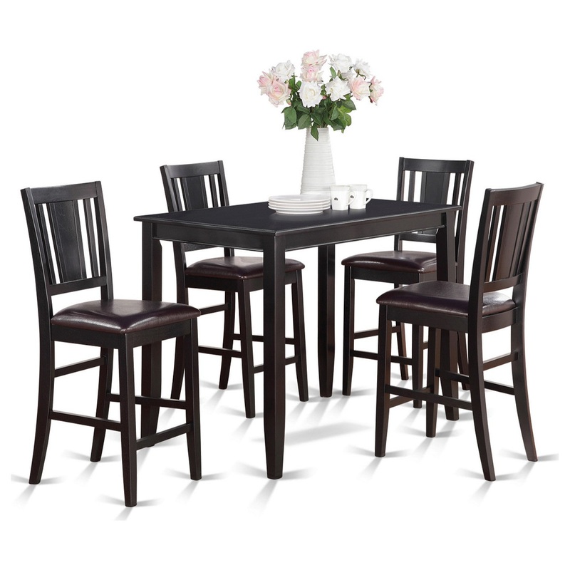 This amazing Buckland rectangular modest counter height table and chairs set is undoubtedly the excellent add-on to any kind of modern dining-room with its rectangular shape as well as the desirable Black finish. The counter height table conveniently seats a couple of people and offers an abundance of of leg room beneath. Transition edges on the tabletop provide you with a touch of class to this contemporary Buckland dining counter height set. Black bean faux leather upholstered seats coordinate set comes with a with the wood finish and gives padded surfaces to rest while you are dining. Montrose style dining chairs are counter height, and the lanky style of this Buckland counter height set provides the entire dining room much more dimension.