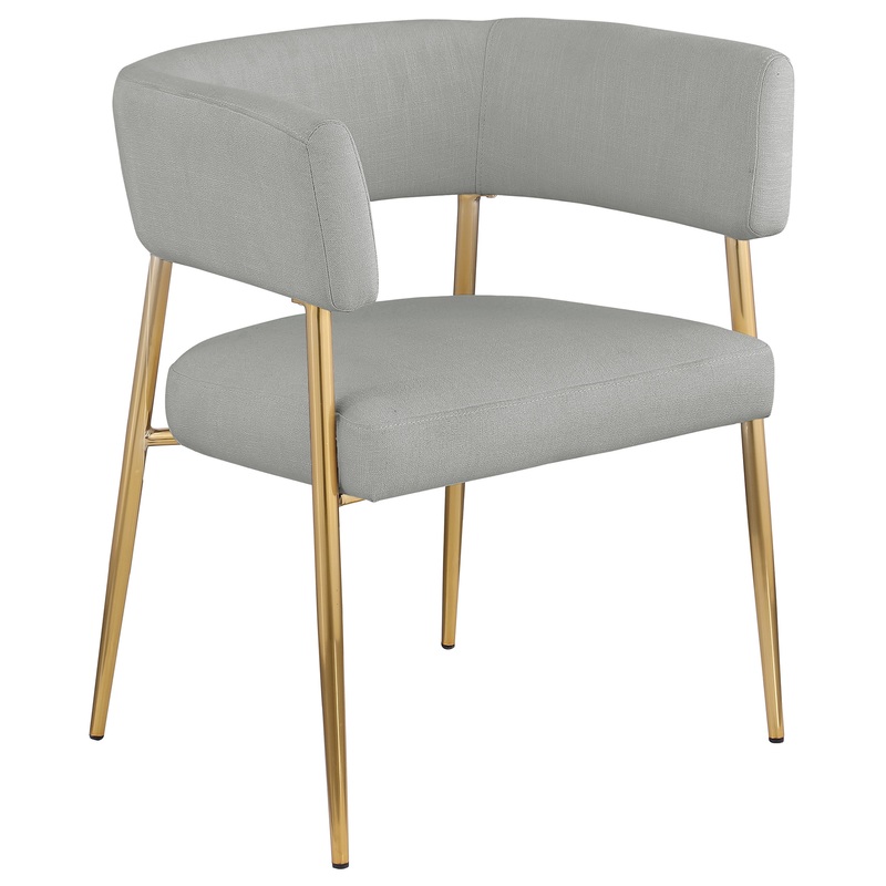 Enliven your dining area with the grey Creston linen textured fabric dining chair. Upholstered in rich grey durable linen textured fabric, this dining chair is not only stylish but also built to last. The brushed gold metal frame adds a touch of luxury, pe