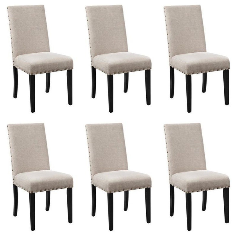 For a comfortable and stylish chair, choose the Crispin Dining Chairs. These dining chairs are built with solid wood legs that are further stabilized by the 4 base stretchers that double as footrests. That quality, durable construction is topped with an amply sized, fully upholstered seat measuring 18.5 wide by 16.5 deep. The easy care, marine blue 100% polyester fabric covers the seat and the super supportive back. Bronze nail head trim gives this chair a distinctive style. With its casual, versatile vibe and made-to-last construction, the Crispin Dining Chair is the perfect option for an accent chair or dining table seating.