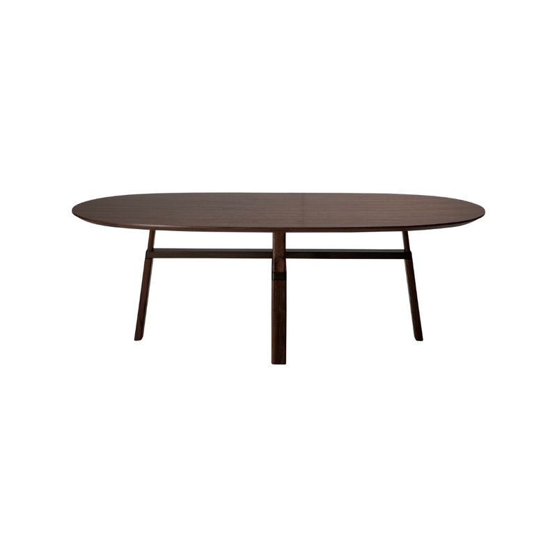 A Santiago Sevillano ltal meglmodott mersz kidolgozs, klasszikus Cross tkezasztal nem marad szrevtlen. Ovlis asztallappal s extravagns, megmunklt illesztsekkel elltott, keresztbe tett fa lbakkal rendelkezik. A lekerektett asztallap ferde szl, knnyed s lgies rzetet kelt, mg a masszv lbak fldhzragadt eszttikt biztostanak.