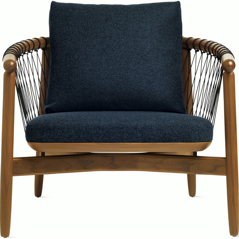 Eoos, a studio based in Vienna by designers Martin Bergmann, Gernot Bohmann, and Harald Grndl, designed the Crosshatch Collection (2014) with a desire to use an industrial material in a handcrafted way, creating a weaving thats both structural and decorative. A year of testing ropes later, they found the ideal choice to be parachute cord, which stays stiff and wont stretch over time. Crafted in North Carolina by skilled artisans using globally sourced materials.